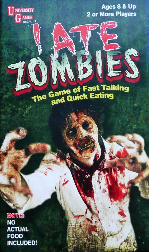 Who's the hungriest Zombie among your friends? Find out with this outrageous, fast-paced party game. This game is based on the popular "I Have" card game. The winner is the first player to run out of cards. Players race each other to drop Zombie, Werewolf, Ghost, Spider, and other horror creature cards into the Darkness Pit. Players are dealt cards with "I...
