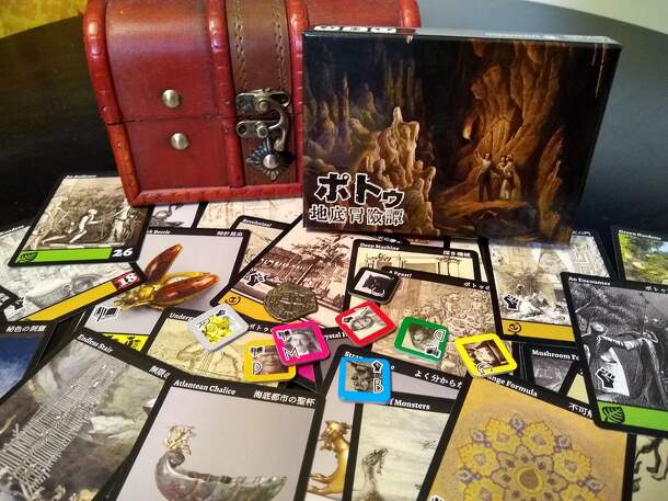 The recently discovered underground continent of Potu is swarming with adventurers after its treasure and secrets, and you're one of them. The continent of Potu is made of up location cards in offset rows. Each round characters simply choose whether they'll go up or down when going into the next row of cards. If you end up in a location by yourself you're...
