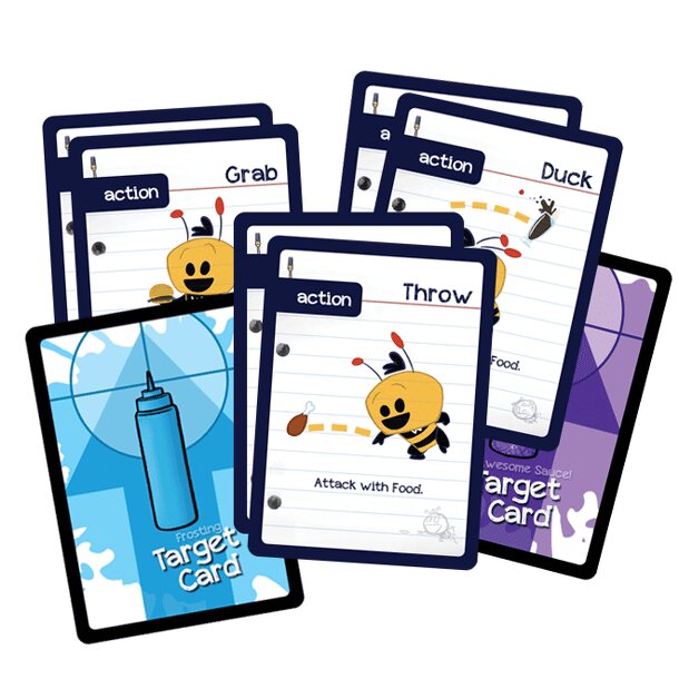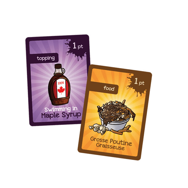 What the Food?! is a fast-paced card game for 3-8 players capturing the experience of a classic cafeteria food fight! Pick up food, throw funny combos at your opponents and duck to avoid "humiliation" points from flying food impact. In the center is a draw deck, with five food or other cards exposed at any one time to make up the "cafeteria floor". Players...