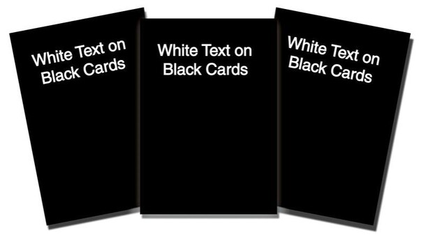 White Text on Black Cards was designed from the despair and despise of seeing and being asked to play all of the variants of white text on black card games. Now when I am asked to play such games, I can play this as an alternative and in just one quick round! After that, your group can easily move onto a better game of any type -- just not these! The game...