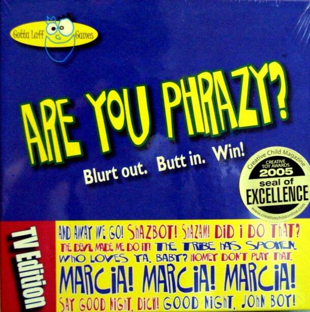 The TV edition of Are You Phrazy. Players make witty conversation in an attempt to be the first player to get rid of all their cards. All the cards have famous phrases from TV shows. Green cards are used to start the conversation("Da Plane! Da Plane!) Yellow to keep the conversation going("Who loves ya baby!") Red to stop the conversation("Good night, John...