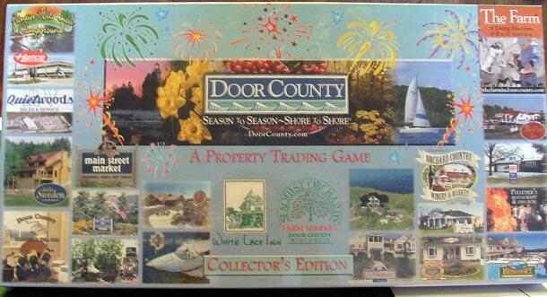Door County - Season to Season, Shore to Shore, A Property Trading Game is a Monopoly type game that uses Wisconsin's Door County as a setting. Play is exactly like Monopoly with the traditional locations substituted with Door County landmarks like Dairy View, County Store,Door County YMCA and Little Sweden. Playing pieces include a Lighthouse, Cookie the...