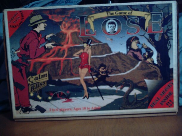 An interesting and humorously packaged alternative take on Monopoly, with players accumulating property and trying to bankrupt their opponents. The big difference is that bankrupt players, though they can no longer win, are not eliminated; they instead go on "Swellfare" and are given rubber checks with which to pay their rents. To win the last solvent...