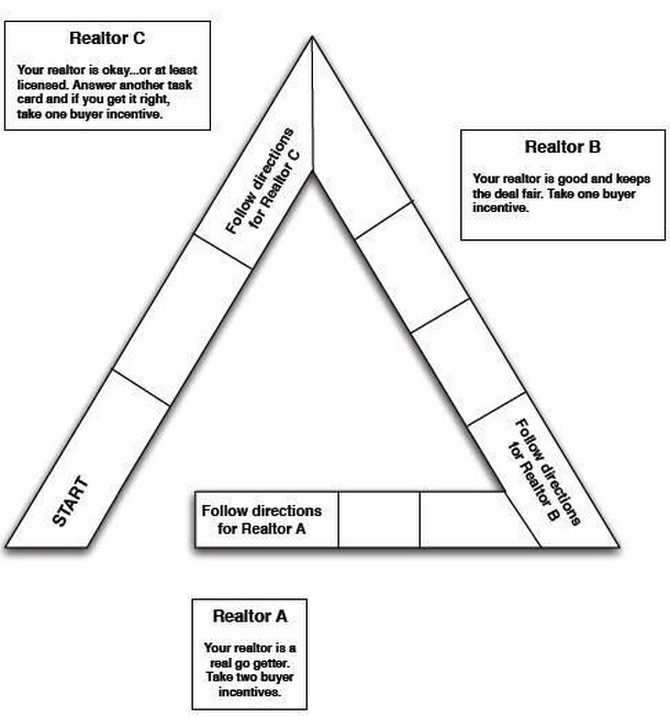 Object of the Game The overall object of the game is to be the player with the best deal on a home. The best deal is determined by the total cost of purchasing the home less the total value of the home. Each mini-game contributes to the total cost and/or total value of the home which is recorded on the home buyer's contract. At the conclusion of the games...