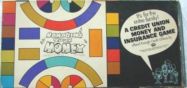 Managing Your Money appears to be a long out of print promotional game released by the Cuna Mutual Insurance Society. The object of the game is to be the first person to repay the 2,000 dollar credit union loan and collect 2,000 dollars in their savings account. After gaining a vocation card, the players move clockwise around a board. The spaces are...