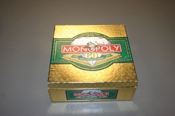 Monopoly game with different tokens, properties, money design, etc. Each property is a picture of a rare, collectible "Penny Bank" from Bank of America's art collection. (From the back of the box.) Contents: Bank of America Custom Bank Money ATMS and Banking Centers replace Traditional Houses and Hotels Piggy Bank, Vault, Money Bag, Armored Car, BofA...