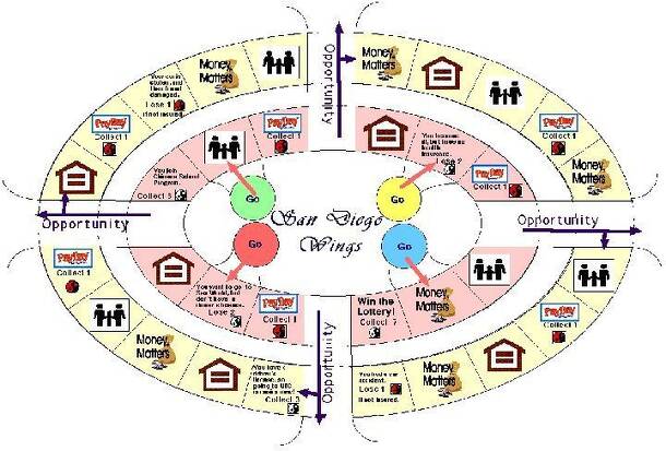 The object of the game is to be the first one to earn your wings so that you can fly beyond both tracks with "comfortable" freedom. To do this, you must be the first one to land on an Opportunity Space with 50 Comfort Points. Choose one player to be the Comfort Chips banker. This player is in charge of all Comfort Chips paid to and from the bank. The...