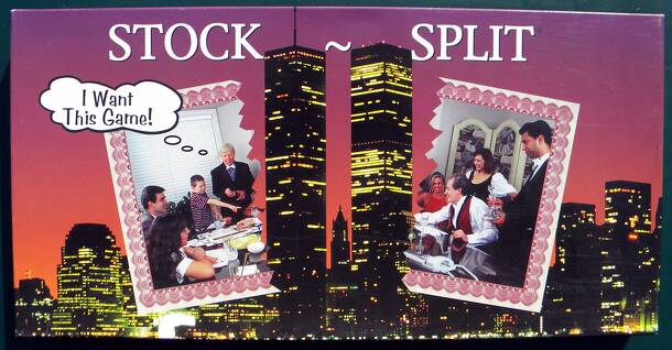 Stock ~ Split is an economic game designed to teach players about the stock market. The game board has a slider to keep track of stock prices, allowing for variability between plays. Players move about the board by rolling dice, but different places offer different movement, depending on what was rolled (an even or odd for example.) Players buy and sell...