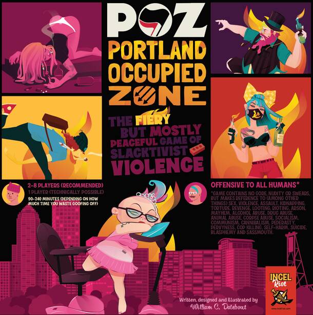 Portland Occupied Zone (POZ) is a semi-cooperative board game where you and up to seven other players roleplay as slacker activists trying to bring about Revolution in Portland’s fantasy Hawthorne District. The objective is to transform your neighborhood from a late-stage capitalist hellscape into a slacker Marxist utopia. The game is turn-based. At the...