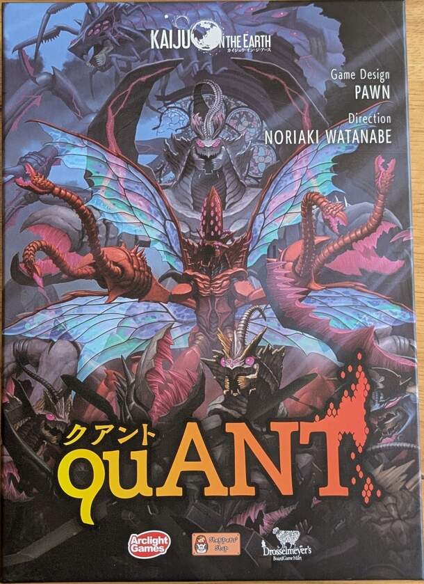 Quant is a solo game, with a variant to support 2 and 3 players, where the player is attempting to to save various cities around the world from the kaiju that are attacking. The game takes place across 6 cities, which have various capacity to absorb monster cards. A player has a hand of 5 cards, and each turn will play 1 - with some being mandatory, and...