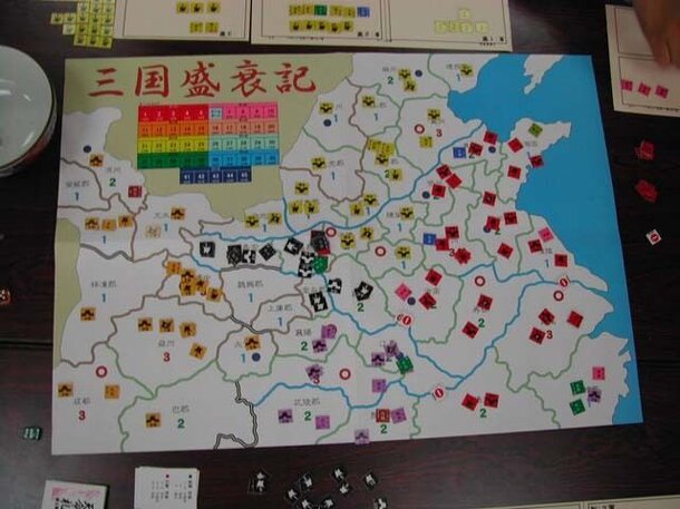 "Rise and Decline of the Three Kingdoms" is a self-published wargame based on the Romance of the Three Kingdoms, a Chinese historical novel. Players control one Warlord in the end of the Han Dynasty. Many leaders do an important function as well as the story in the game. They appear and leave by the fate card. Turn order is decided by a chit-pull...