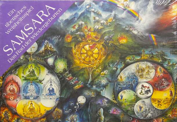 The game teaches themes from Buddhism and rebirth. Basically, it's a race in which you want to be the first to reach space 64 (single victory). Since the game is played in 2 groups, there is also a group victory when all members of the group reach space 64. A player rolls the dice and may - depending on the current special rule - move on, take a black or...