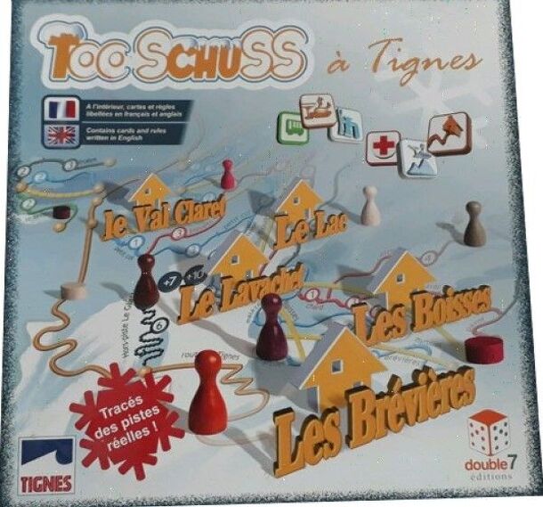 Too Schuss is a boardgame that takes place in the Ski Resort of Tignes in France. The board represent the map of the ski resort. Goal: Be the first player to end your skying day with the higher score. Game is a race where you need to finish the day as quick as possible while optimizing your path down the ski trail to score points. A lighter version of the...