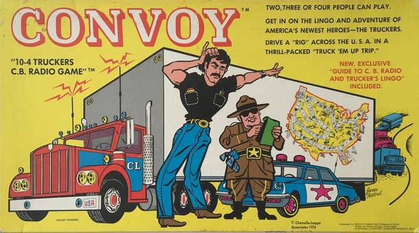 Subtitled "The Trucker's CB Radio Game", this 1976 title is a roll-and-move affair that riffs off that era's fad around Citizen's Band radio. The game takes players around a lavishly illustrated map of the United States, with occasional dead-ends and many bear traps and other distractions along the way. The inside of the box top has an extensive glossary...