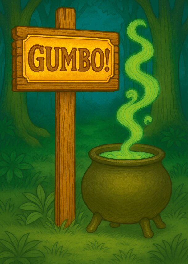 The witches are gathering ingredients to brew the most potent gumbo! Find, borrow, or even steal ingredients from other cauldrons. But hurry up - the others might just do the same to you! On each turn you will add an ingredient card to your hand of secret ingredients. You can then Mix an ingredient from your hand into your cauldron face-up in front of you...