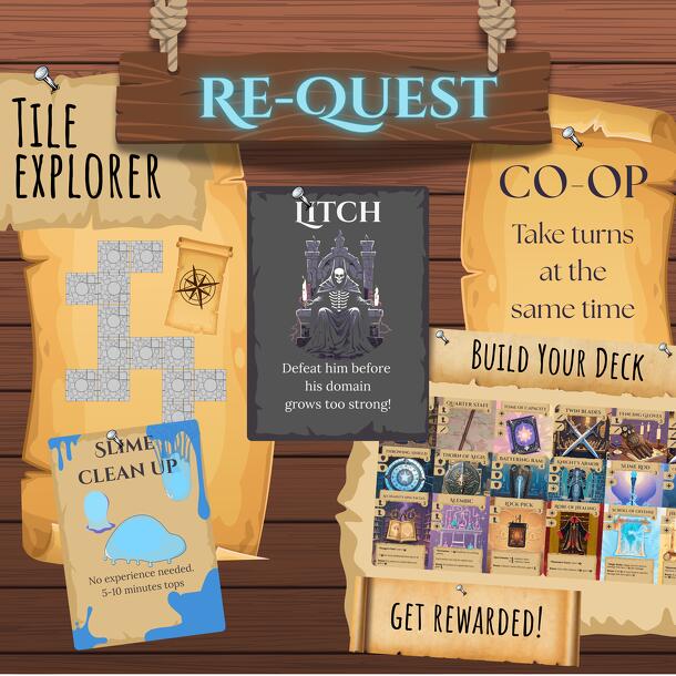 Re-Quest is a cooperative dungeon crawler where all players act simultaneously, creating a fast-paced and dynamic experience. Each session combines tile-based exploration with strategic deck-building, ensuring fresh challenges every time you play. As bold adventurers, you are sent to complete missions left unfinished by the less fortunate. These...