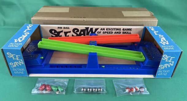 Pinball SEE SAW is a game designed to give you and the whole family many hours of exciting fun. Both Offense and Defense must be played at the same time. OBJECT: As a game requiring speed, quick reflexes and coordination, the object of the game is to score 10 points while limiting your opponent to fewer points. The game unit is constructed of 2 independent...