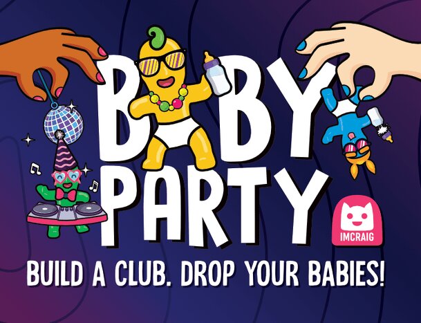Baby Party is a hilarious party and dexterity game where players go head-to-head to complete challenges drawn from a deck filled with baby-themed mini games. The winner is the first player to land all three of their tiny, colorful baby figurines onto an ever-growing dance floor of cards at the same time. The theme is a chaotic baby nightclub called Bottles...