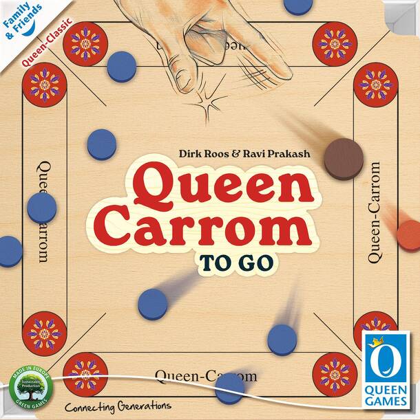 Carrom is most easily described as "finger pool". On a 29" x 29" wooden board, players flick a large weighted disc (the striker) at smaller wooden discs (the carrom-men). The goal is to sink your 9 carrom-men (black or white), as well as the red Queen, in the four corner pockets. The first player or team to accomplish this collects points for the round...
