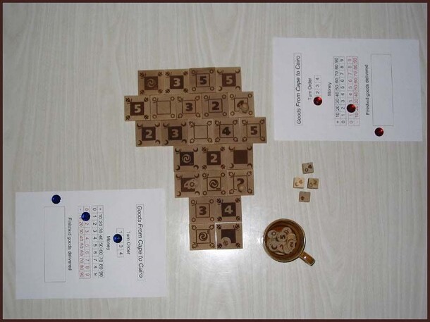 Players are the proprietors of long distance haulage companies in Africa, competing for goods delivery contracts in a tough economic environment. The player with the most money after 6 turns wins the game. This game was an entry to the Mesomorph 1 Piecepack Contest, and is designed for a standard piecepack or a playing cards expansion (and 3 markers for...