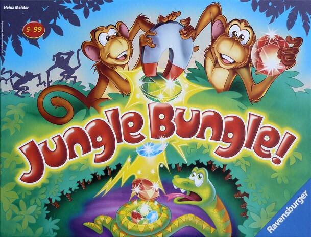from the back of the box All hell is breaking loose in the jungle! Somebody has stolen the monkeys' treasure - and you have to find it! Help the monkeys and find your way trough the jungle with the magnetic treasure detector. If you hear a "clack!", you have found the treasure. The player who finds the most gems and brings them to the king of the monkeys...