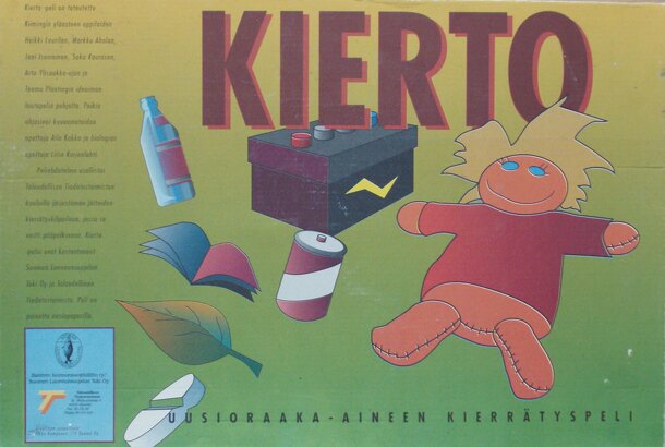 Kierto (Cycle) is an educational game about recycling, designed by a group of Finnish junior high students and their teachers. The prototype won first prize in the Economic Information Office's recycling competition and was then published by EIO in cooperation with the Finnish Association for Nature Conservation. The game board has several recycling...