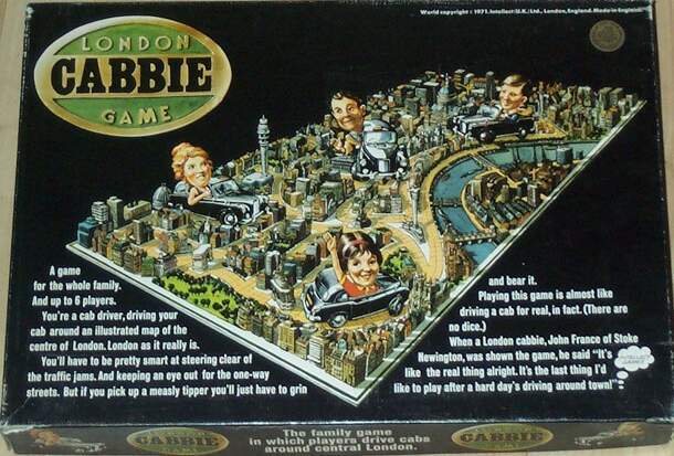 Armed with a cab you travel the twisted streets of London picking and dropping off fares. Each car has 20 points of movement each turn. Passenger cards with the pickup point listed are placed in 5 piles. Any player can pickup any passenger showing. When a passenger is picked up the player takes the card and a new card is turned over in that pile keeping 5...