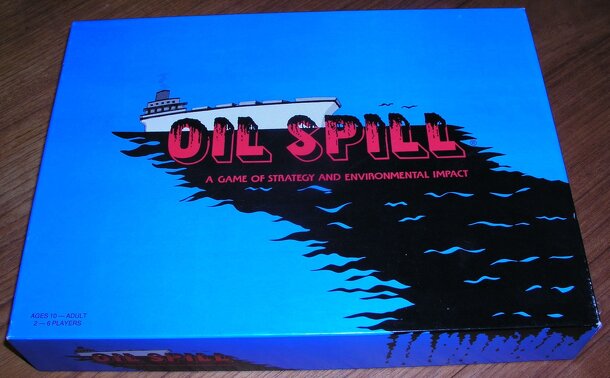 From the box: "You are the captain of an oil supertanker. Your objective is to outmaneuver the other captains and be the first to collect and deliver your cargo of crude oil to the refinery. Chart your course to navigate the environmentally sensitive waters and the hazards of the savage seas. Be prepared to face the consequences of human error. Each roll...