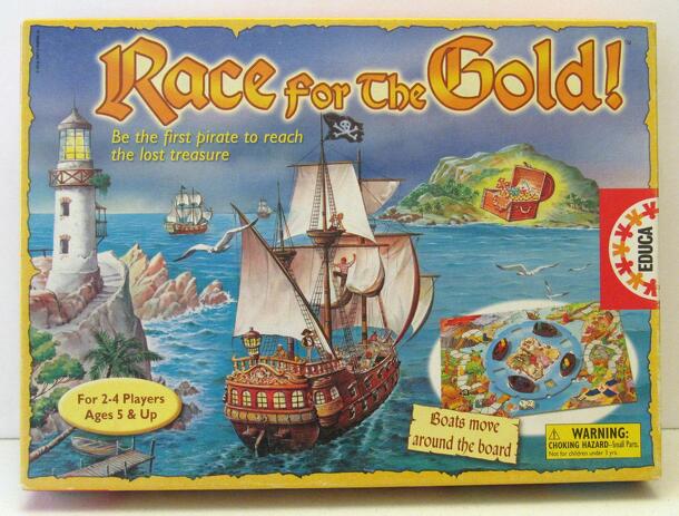 Be the first pirate to reach the lost treasure! Players roll the dice and move their three colored playing figures along the board, hoping to reach the ships, which will take them to Treasure Island, where the golden treasure lies. On every turn, players have several options - they can split the roll of the dice and move two players along, they can use one...
