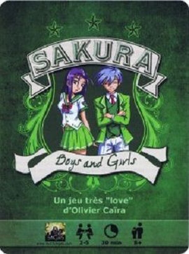 The players have to create the best couples of Sakura High School. They start at the middle of an area made of 54 cards(27 males and 27 females). At his turn, a player can use 0, 1 or 2 actions(similar or different) among 3: move one of his 2 pawns towards a card or an empty space. reveal a hidden card. make the union of a boy and a girl with his 2 pawns...