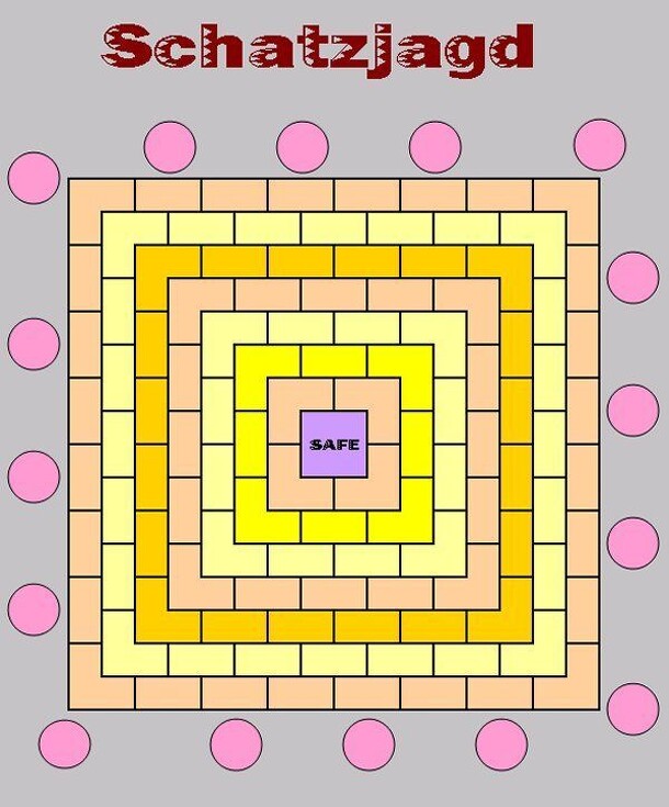 This game was published in the German zine "Pöppel-Revue" 6/86. According to the description, the original title of this game from Derek Carver was "Loot". 6 or 8 (!) players start with 2 treasure hunters and 1 guard in the middle the board to search for 16 treasures of different value. The board has 8 rings with an increasing number of spaces on them; the...