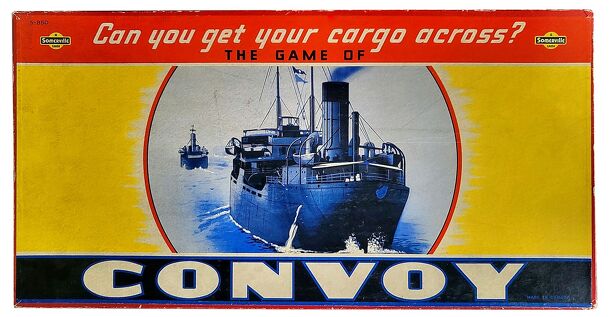 Convoy is played on a board with 48 circles. On each of the four sides are 4 circles colored red, green, blue, and yellow, to indicate players who own these colors. Each player takes four ships of his color and one cargo block of the same color. The object of the game is to transport the cargo across the board to any circle on the outside edge directly...