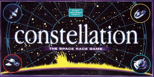 Constellation is an exciting space adventure game. The year is 3001 and you are a finalist in the great Constellation Space Race. As a spaceship captain you are dealt three of the 88 constellation cards at random. Now the race begins...choose a pewter spaceship and roll the die. To travel through space you either have to answer questions or follow actions....