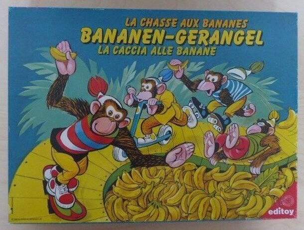 Roll and Move game similar to Mensch ärgere dich nicht (Ludo) Each player has 4 money pawns in one color (green, red, yellow or blue). Each monkey has a differnt tails in one of the four colors (green, red, yellow, blue). There are four starting spaces and the monkeys start at their matching tail color and the goal spaces are also color coded for the...