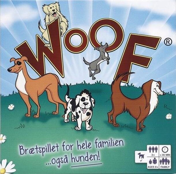 Woof is a danish board game for the whole family... and their dog. Woof contains 200 different questions and exercises in different degrees of difficulty, so everybody will be able to play, even the dog. An exercise could be having to stand still on all fours for 20 seconds or sit with a treat on the nose for 2 seconds. If you answer questions correctly or...