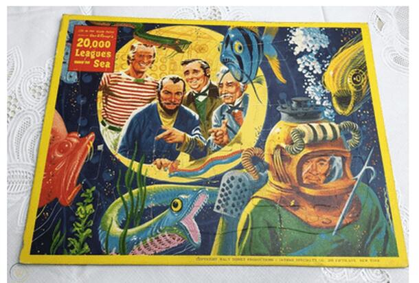 The game 20,000 Leagues under the Sea by Jaymar games is based on Walt Disney’s first sci-fi film of the same name. Players begin by spinning the Nautilus (Captain Nemo’s Machine) to indicate the moving of their pieces. The spinner contains R’s and L’s for Right and Left moves. In front of each letter is a number specifying the amount in which to move. The...