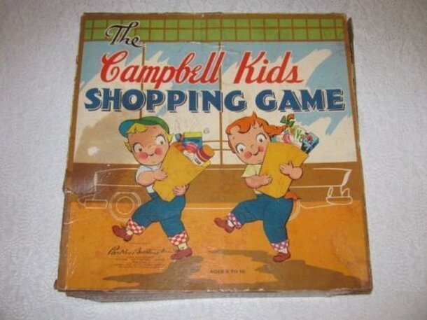 Licensed by Campbell’s Soup Company, “Campbell’s Soup Game” is a children’s game for ages 3 and up, for 2-4 players. It includes a spinner, alphabet letter tokens (which are round, and the writing on them resembles soup noodles), plus two-sided round discs to serve as Campbell’s Soup Bowls, according to the package. The label on the container has text in...