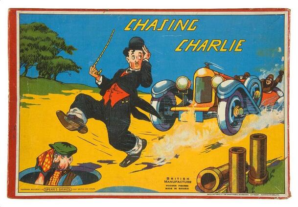 The Chase is played on a square wooden board with a round pit, the "hideout," carved out of the center. Four lines of small holes extend vertically and horizontally from the pit to the sides of the board, and continue around all four sides making a border. Near each corner of the board are four more small holes. Printed on the board over the lines of small...