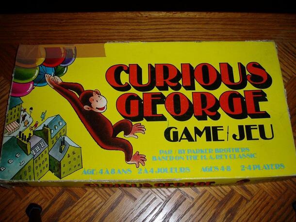 This game is based on the Curious George books. Each player takes 7 balloon counters of 1 color, and uses a spinner to advance around the board. The spaces show many of Curious George's adventures. When you land on an Adventure Space, you place 1 of your balloon counters onto the white circle adjacent to it, but only if your color is not already on top of...
