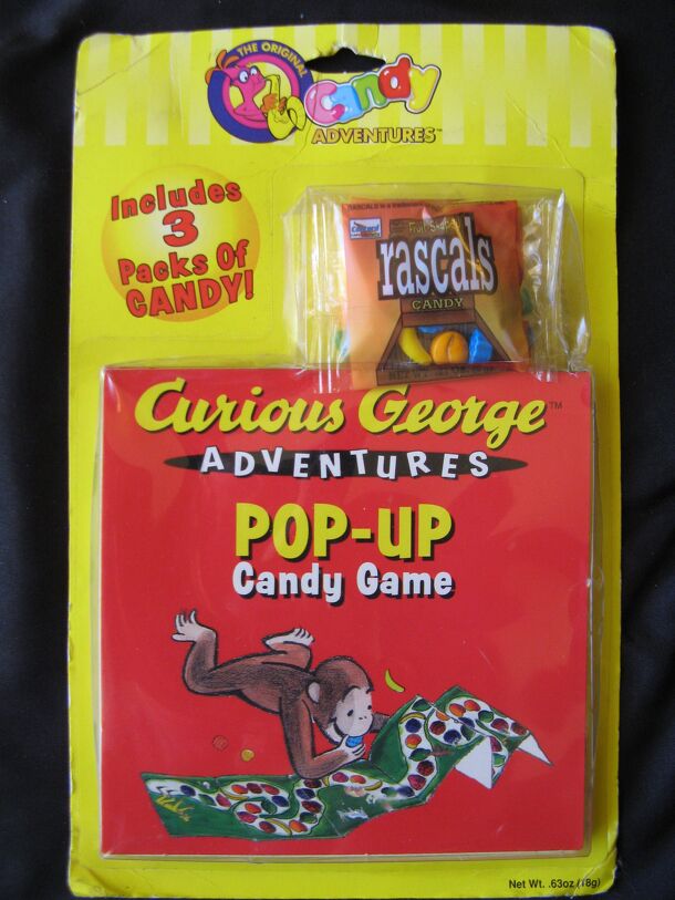 In Curious George Adventures Pop-Up Candy Game, players compete to be the first to reach the Man in the Yellow Hat while collecting as much candy as possible along the way. The game comes with packages of Rascals candy, which are placed in the candy circle on the board. Players choose a game piece and place it on the start square. They take turns rolling a...