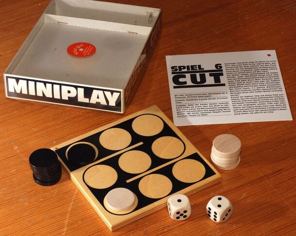 Cut is played on a 9-space track. Players enter pieces by dice throw at opposite ends and try to bear them off at the opponent's end. Friendly pieces landing on each other stack and then move together; an piece landing on an opposing piece or stack sends the latter back to the beginning. In a variant the loser of a round loses all pieces remaining on the...
