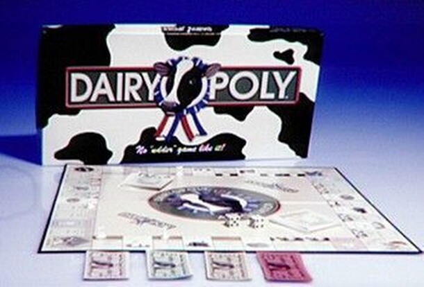A modification of Monopoly. Instead of Atlantic City streets, players purchase dairy farms. When a monopoly is achieved, instead buying houses and hotels, players can buy calves and cows. Instead of jail, players can be sent to dairy school. And instead of rail roads, we have milk routes. Anyone who likes Monopoly will probably like Dairyopoly. And anyone...