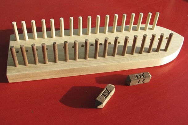 An old scandinavian game, played in certain parts of Denmark and Norway. Two players take turns rolling the dice to try and free their pegs for movement, then try to capture the opponents pegs before they can ambush your starting pieces. The board consists of three lines of holes for the pegs, the middle one being one hole longer than the two sides. The...
