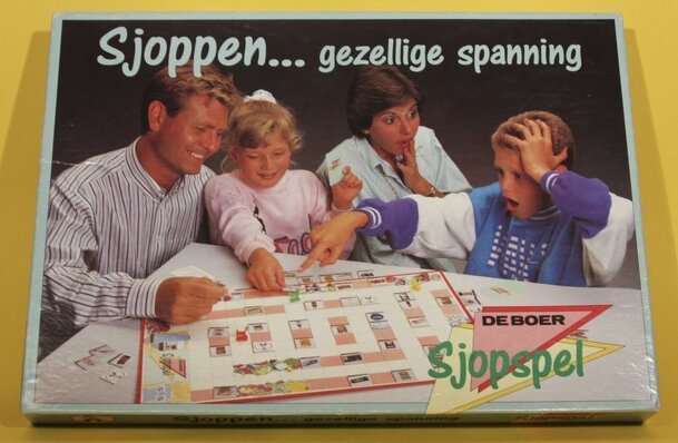 De Boer Sjopspel is a game where players try to obtain all products listed on a shopping list. They do so by rolling a die to move on the board, trying to get to the items they need. The first person to get all the items and return to the cash register is the winner. The pawns are in the shape of shopping cards, made from plastic. The items come in the...