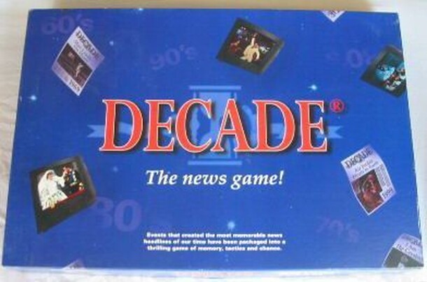 From the back of the box: The aim of the game is to pit your wits against your opponents on the way to being the first to collect a full "decade" of the biggest news stories from the past 40 years. On the surface, Decade is a feel good game that allows all its players to share in their mutual history. But be warned. There'll be both good news and bad news...