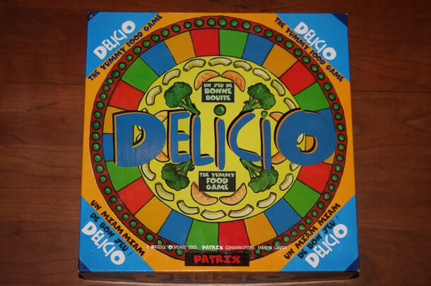 Delicio, the yummy food game Object of the game: The first player to fill his or her plate with a balanced meal wins. How to play: Spread all the pieces of "food" out on the table, facedown, around the central board. Each player takes a "plate", which has 8 colored squares on it. Roll the six-sided die to move around the circular central game board and...