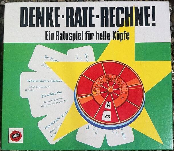 Think-Guess-Calculate An exciting game for 2-6 persons over 6 years of age - encourages quick and logical thinking - good mental arithmetic is the winning factor. First of all a quiz master is chosen. He spreads the card face down on the table and spins the disk. When the disk comes to a halt he calls out the letter visible in the window of the disk. The...