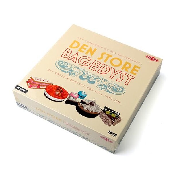 A family board game based on the Danish TV show "Den Store Bagedyst", a spin-off of the The Great British Bake Off TV show, where contestants compete in creating the best cakes. Players roll a dice and move around on a circular board where they land on spaces which result in various challenges. They get to do such things as answer a question from a card...