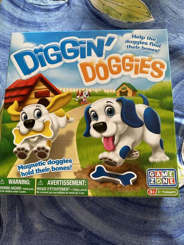 Board game for Ages 3 and up Instead of dice there is a doghouse to push upon; the mummy dog upon it barks 1, 2 or 3 times to tell the children how many steps they can make. So you don't have to seek the dice every time your child has 'thrown' it. Learning to count should be made easier this way. Goal of the game is to find the 3 bones in the colour of...