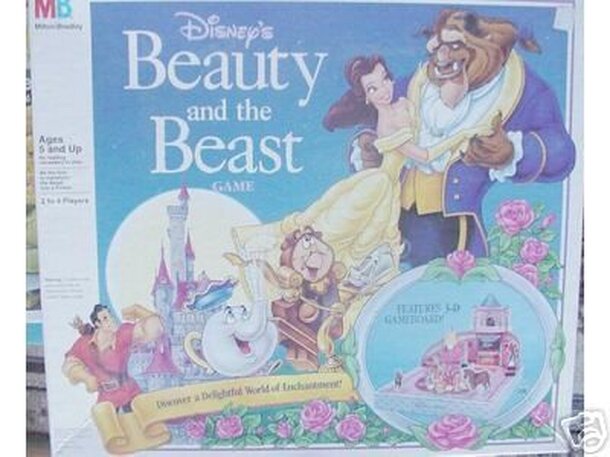 Help Belle Break the Spell. The box is a 3-D castle. After each rolling of the special die, move around the revolving table to help Belle climb her staircase to the tower. There she can save the Beast from the wicked spell. But watch out for Gaston. If he reaches the tower first, he will make beast stay Beast forever! Contents: Gameboard with 7 Background...